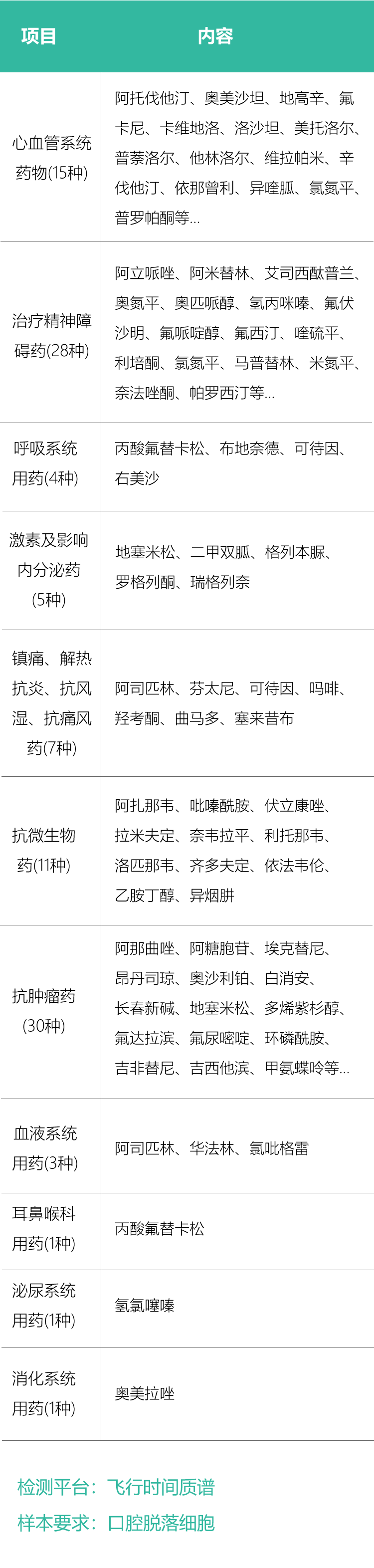 成人安全用药基因检测(11大类,106种药物)