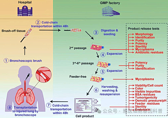 △支气管上皮基底层来源的P63+ LPC用于临床治疗的流程